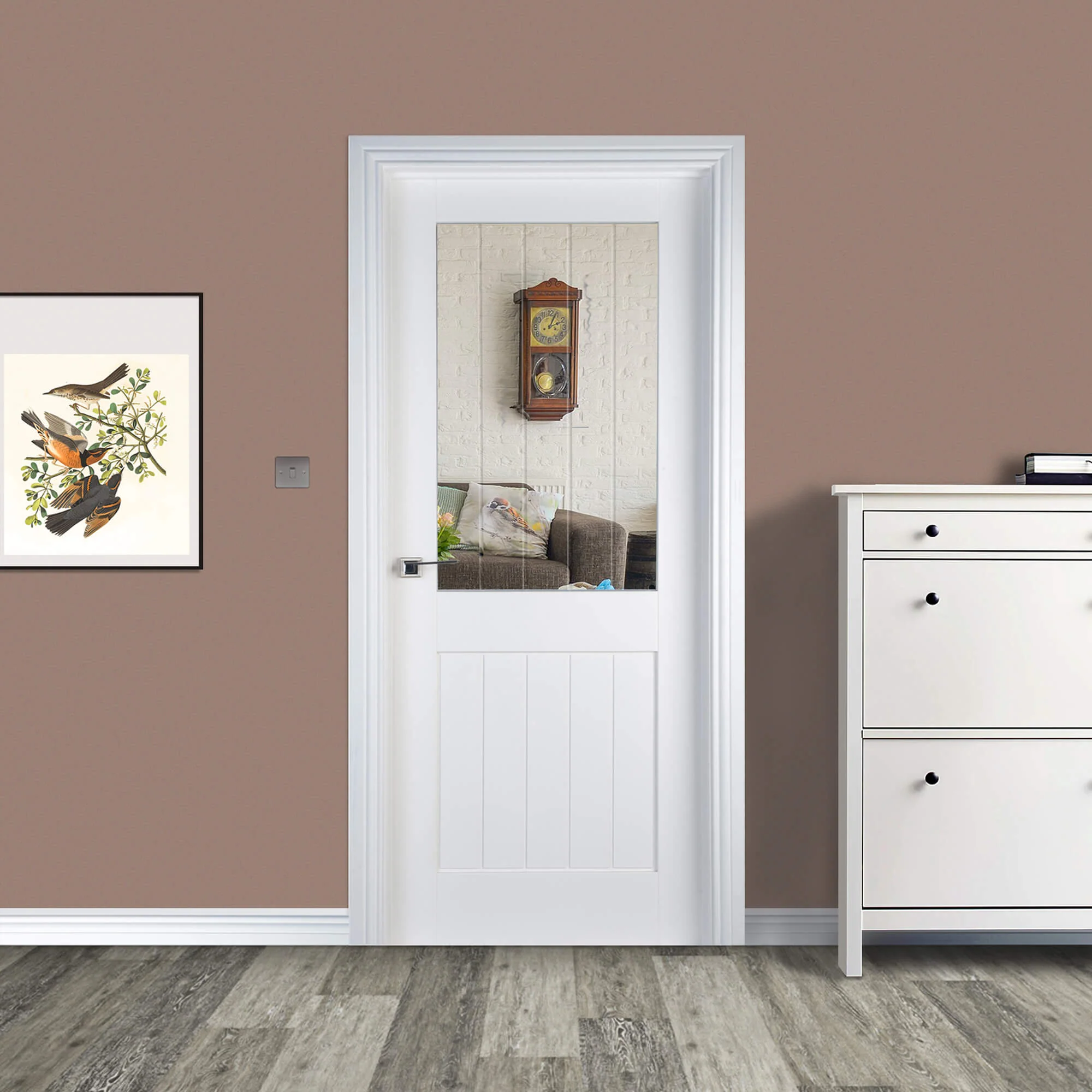 The Mexicano White Primed 1 Lite Pre-Glazed Door blends timeless vertical panelling with the added benefit of natural light. Retaining its signature rustic charm, this door introduces a single, centrally placed glazed panel — perfect for brightening up interior spaces while maintaining a warm, traditional feel.